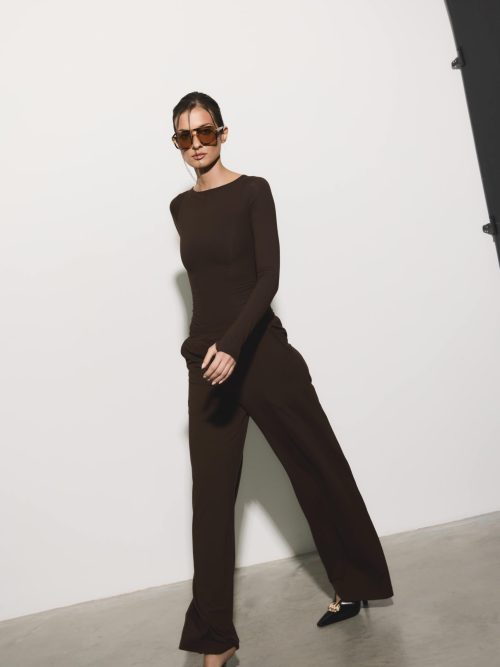 Tył pozostaje luźny, z odkrytymi plecami i prostym wykończeniem, które nadaje całości minimalistyczny, nowoczesny charakter.